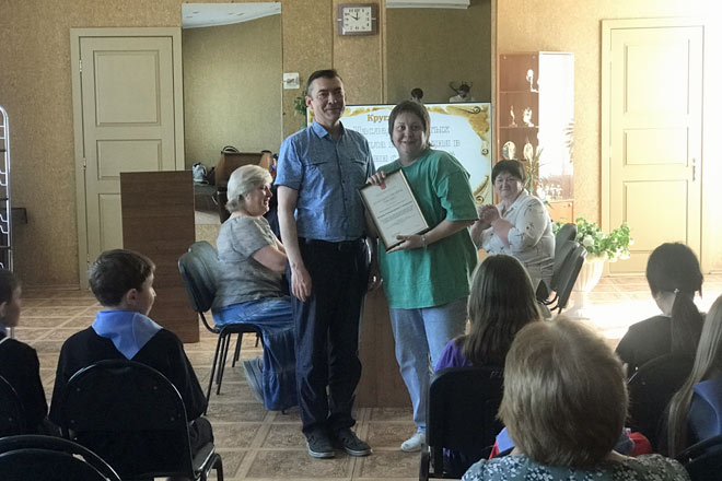 По окончании работы круглого стола было вручено благодарственное письмо управления общественных связей Губернатора Красноярского края журналисту Шушенской районной телекомпании «Южные горизонты» Ксении Соковиковой за поддержку проектов духовно-нравственной тематики в средствах массовой информации.