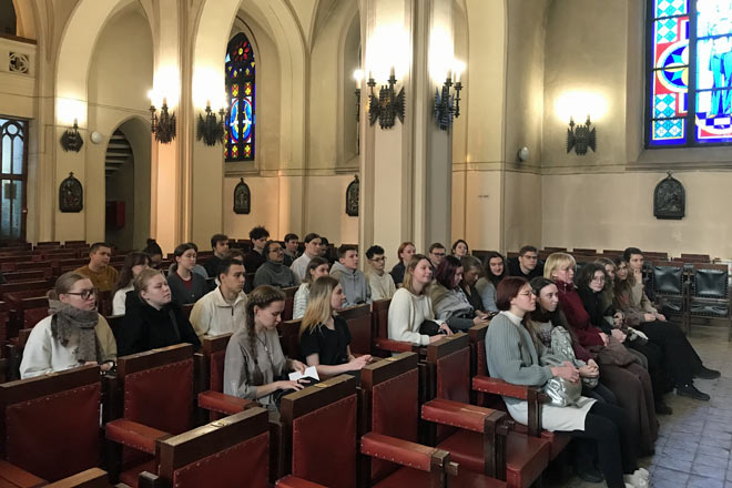 Участники экскурсии познакомились с историей уникального здания в готическом стиле и его архитектурными особенностями, а также с ролью этого здания в духовной и культурной жизни краевого центра.