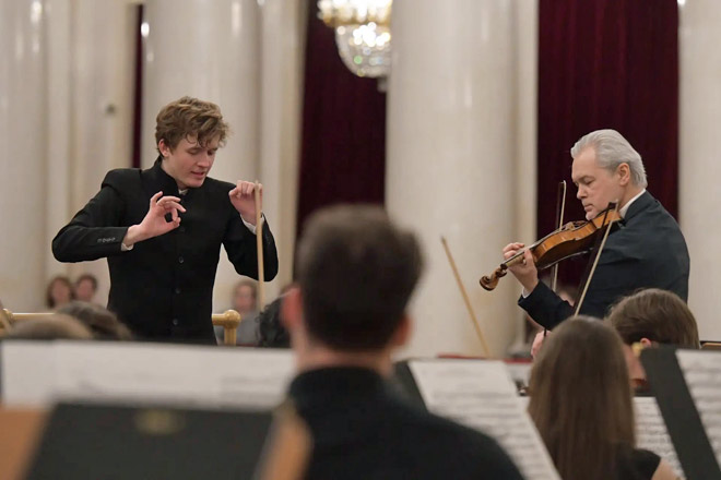 Российский национальный молодежный симфонический оркестр впервые выступил в Большом зале Санкт-Петербургской филармонии.