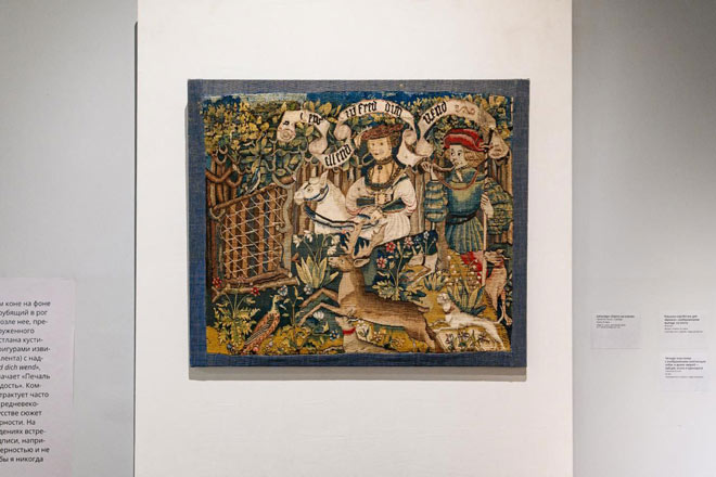 Посетители также смогут увидеть вышитый золотом и раковинами седельно-сбруйный комплект, принадлежавший императрице Екатерине II, которая в молодости увлекалась охотой. А среди ювелирных изделий представлены два парных бриллиантовых перстня – мужской и женский – с необычной вставкой, сделанной из оленьего копыта. Предположительно, они были изготовлены после успешной охоты, организованной в честь свадьбы или помолвки.